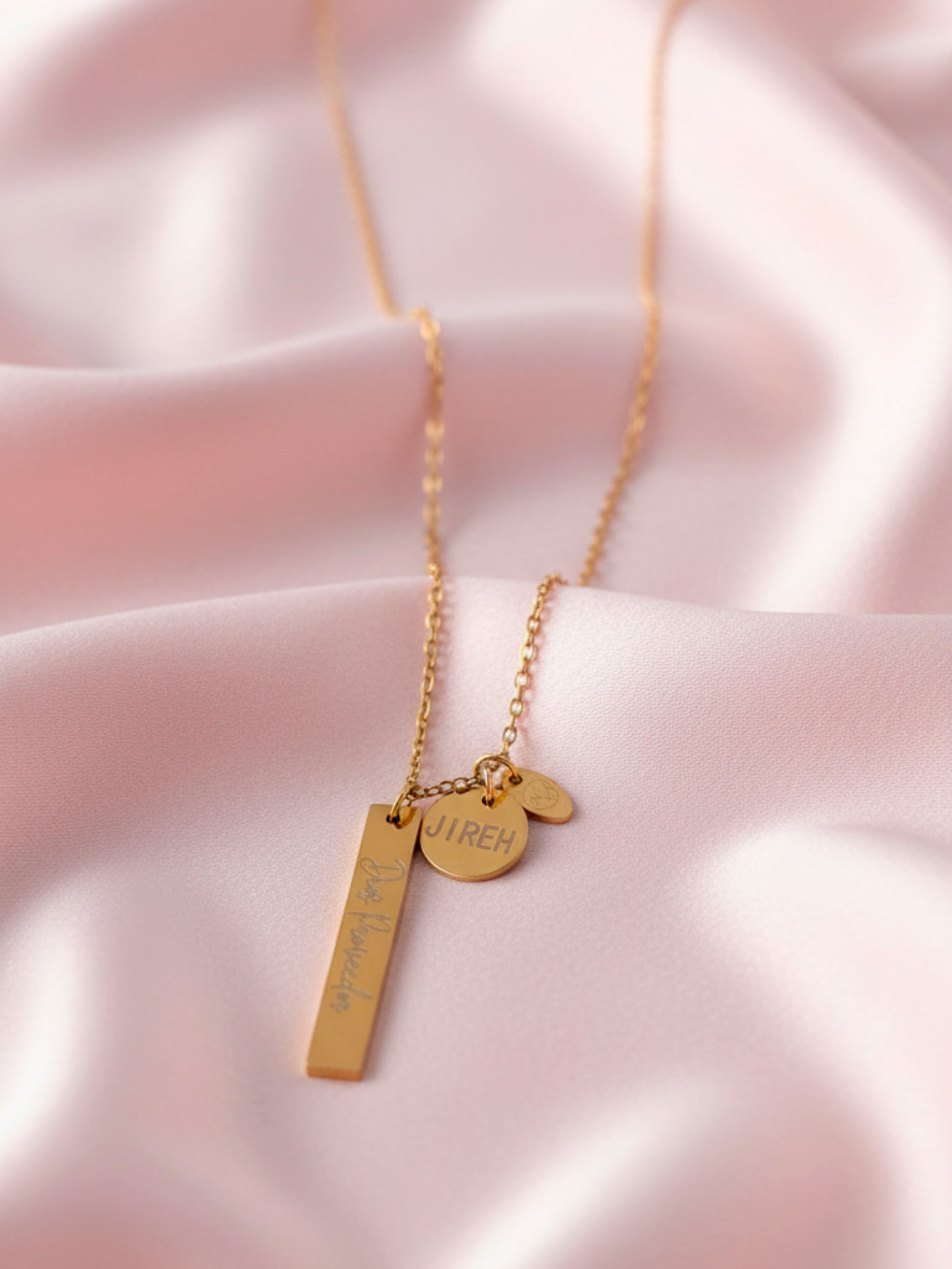 Collar en acero inoxidable de alta calidad con acabado dorado que resiste el tiempo y el uso diario. Collar con colgantes grabados con el nombre JIREH, una palabra de profundo significado espiritual que representa "el Señor proveerá". Ideal para quienes desean llevar consigo un recordatorio de fe y esperanza. El diseño elegante combina durabilidad con un mensaje inspirador, convirtiéndolo en una pieza versátil para cualquier ocasión. Un accesorio significativo que trasciende la moda, conectando con valores personales y espirituales.